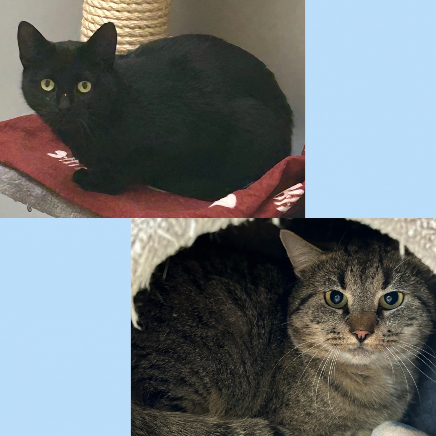 Rigatoni (get/männlich) & Spaghetti (schwarz/weiblich) – scheue Katzen suchen sicheren Rückzugsort