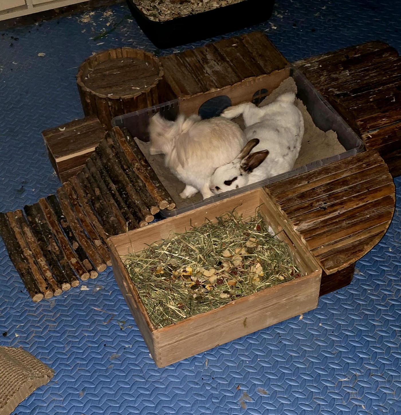 Fluffy Ist kastriert,wurde mit der Hand aufgezogen und ist seid der Geburt bei meiner Mutter aufgewachsen. Als die Mutter und Schwester Verstorben waren mussten wir uns ein neues Tier holen, damit Fluffy nicht alleine lebt.