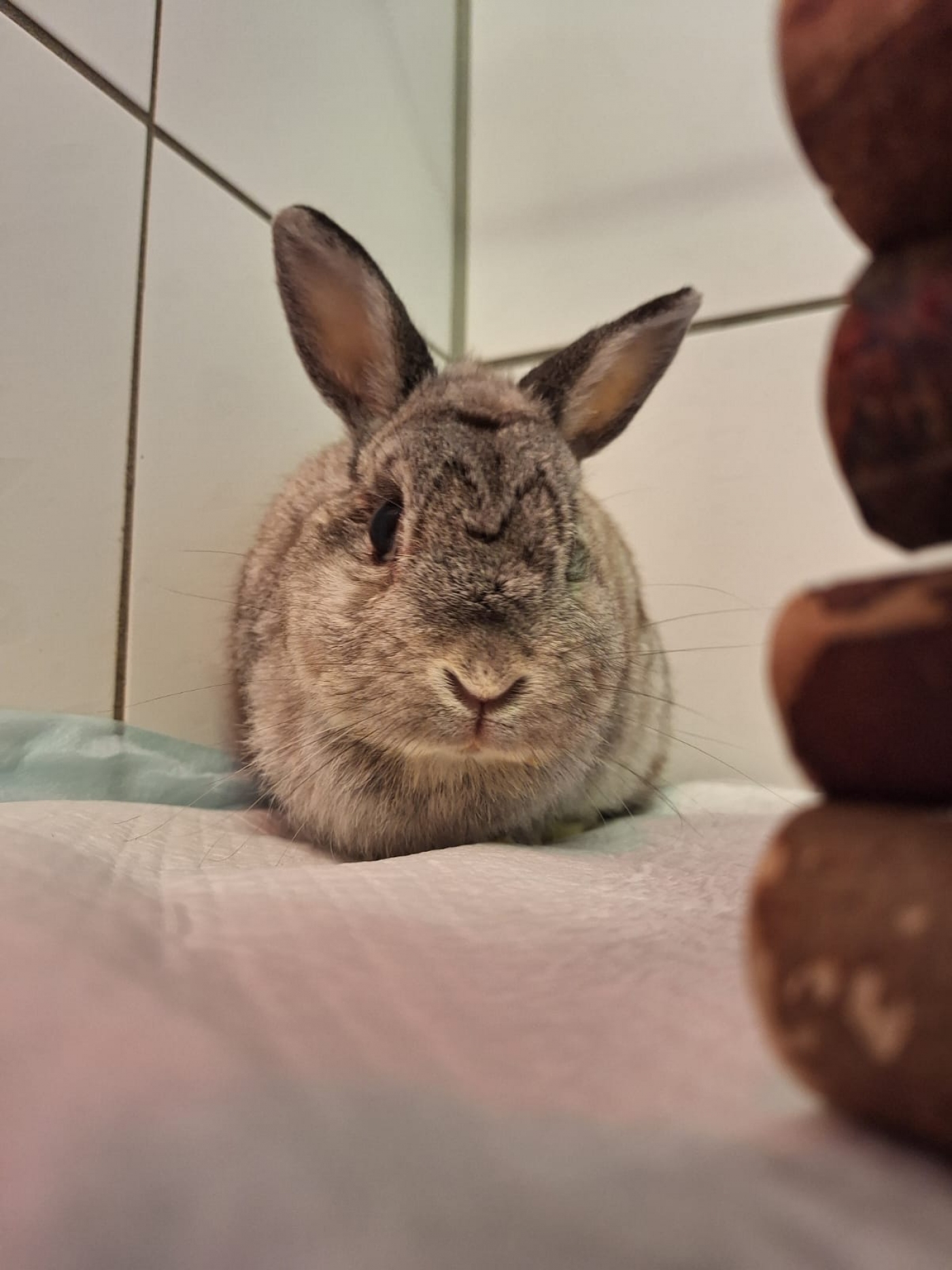 Vom Wesen her bleibt Toni aber eine friedliche und sehr umgängliche Kaninchendame, die nicht mehr so viel aufdreht. Sie ist vermutlich schon etwas älter, ca. 6 bis 8 Jahre und wünscht sich nach dieser langen, anstrengenden Behandlungszeit nun endlich einen Neustart in ein artgerechtes, stressarmes Leben.
