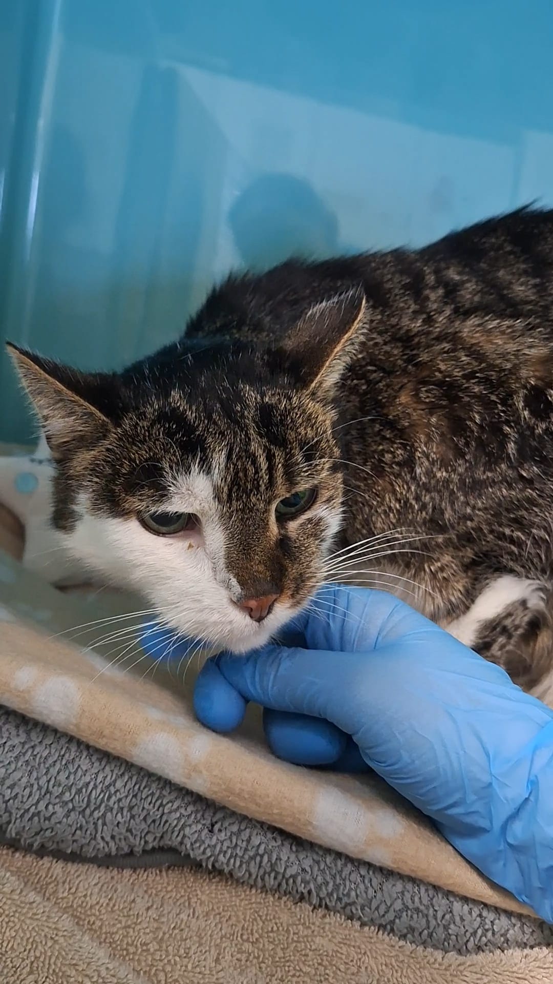 Sweetie war eine verwilderte Katze, die wir 2019 wieder ausgewildert hatten, weil sie mit uns Menschen nichts zu tun haben möchte. Leider haben wir sie durch eine unschöne Begegnung wiedergetroffen. Nach einer Fundmeldung über eine apathische Katze haben wir schließlich Sweetie gefunden - versteckt hinter einem Carport, apathisch, total schwach und bereits unterkühlt. Sie wollte noch fliehen, konnte aber nur kriechen - ihr linkes Hinterbein war ohne Gefühl. Wir konnten sie schnell sichern und sind sofort in unsere Vertragsklinik gefahren. Dort bestätigte sich recht schnell unser Verdacht, dass sie angefahren wurde. Abgesplitterte Vorderkrallen, rausgeschlagene Zähne, aufgeschürfte Ballen, ein massiver Beckenbruch und der Kreislauf total im Keller... Obwohl sie Streuner-typisch eine charakterstarke Meinung hatte - trotz bereits injiziertem Schmerzmittel - wollten wir ihr natürlich eine Chance geben. Schwanz- und Analtonus waren da, das heißt, es gab Hoffnung, dass sie noch selbstständig Kot und Urin absetzen kann und der Bruch grundsätzlich operierbar. Also liefen direkt die ersten Maßnahmen zur Stabilisierung des Kreislaufs. Nachdem dieser tatsächlich nach einiger Zeit zum Glück wieder in Gang kam und das Schmerzmittel seine volle Wirkung zeigte, war sie auch bereits etwas ruhiger und hatte schon ein bisschen selbstständig gefressen. Die aufkeimende Hoffnung zerschlug sich aber wieder so schnell, wie sie kam... Ihr Blutbild und ein Ultraschall zeigten, dass sie bereits altersbedingt Nierenkrank war und die OP und die Narkose höchstwahrscheinlich nicht überleben würde. Also entschieden wir uns letztendlich doch dafür, sie schweren Herzens über die Regenbogenbrücke gehen zu lassen am 18.12.2025