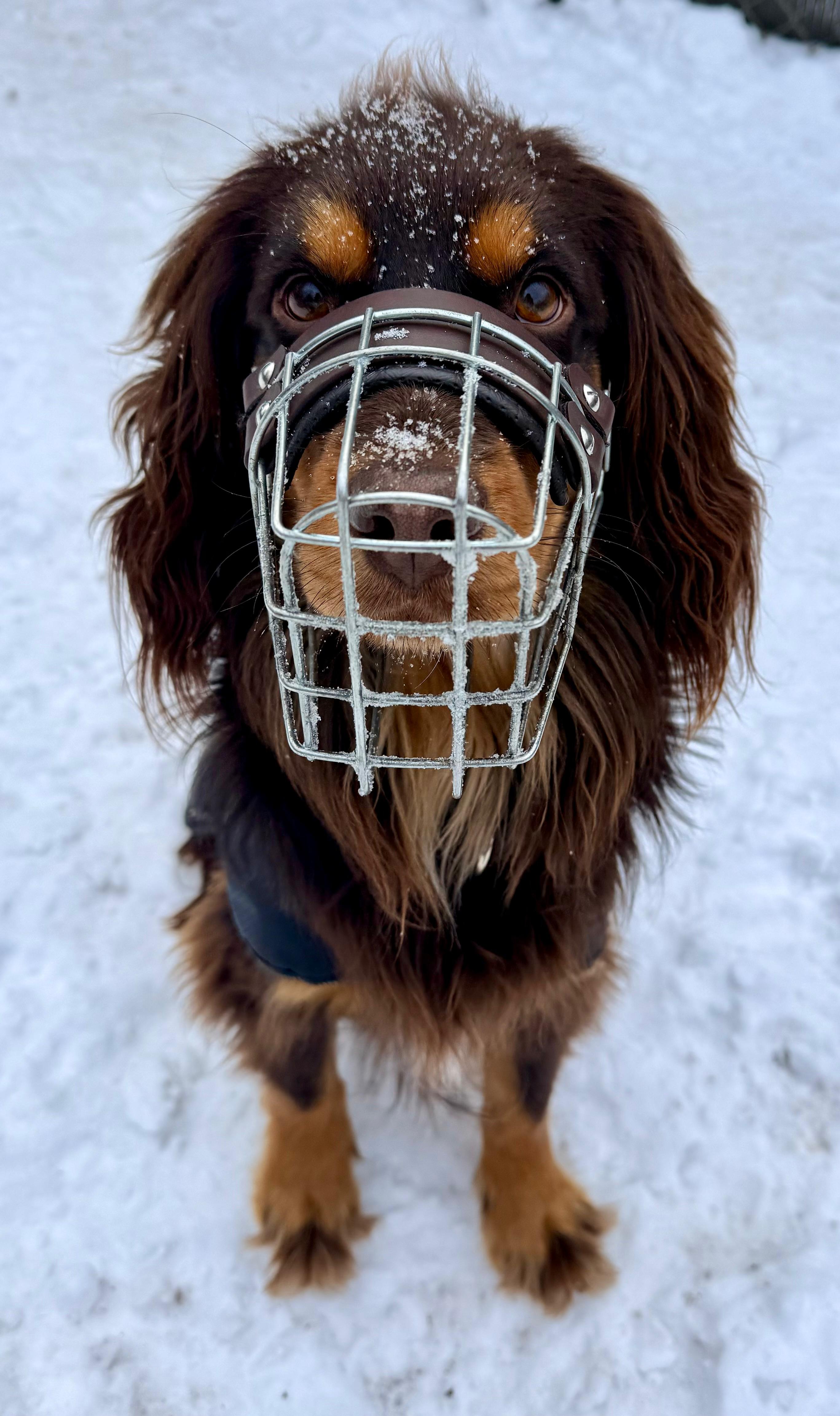 Generell muss an seiner Leinenführigkeit, der Orientierung am Menschen und der Gelassenheit noch einiges getan werden.