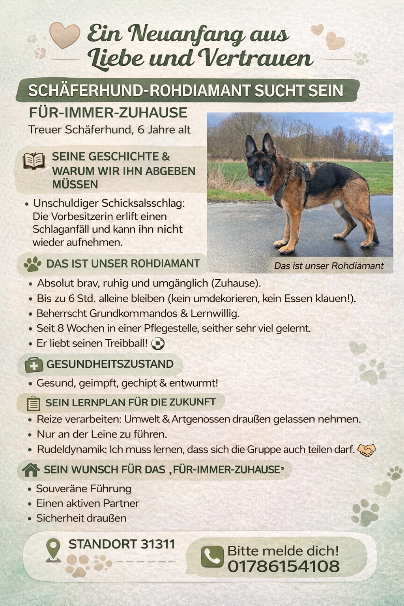 SCHÄFERHUND-ROHDIAMANT SUCHT SEIN FÜR-IMMER-ZUHAUSE