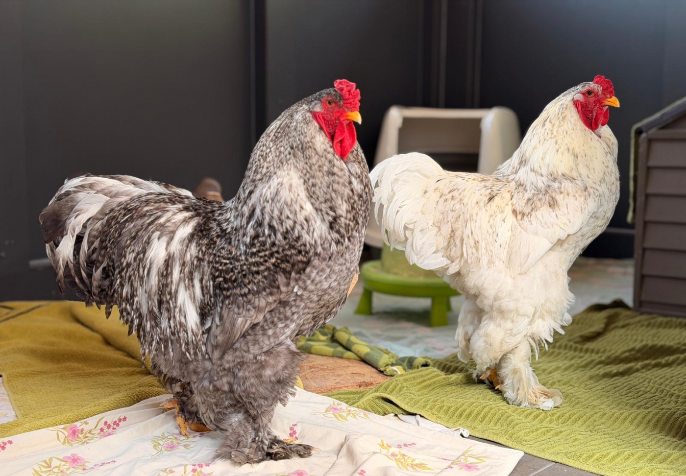 Jürgen und Zlatko sind rassebedingt eher ruhig und friedlich und verstehen sich auch untereinander gut. Bei einem ausreichenden Platzangebot mit genügend Hennen können wir uns auch vorstellen, die Beiden zusammen zu vermitteln.