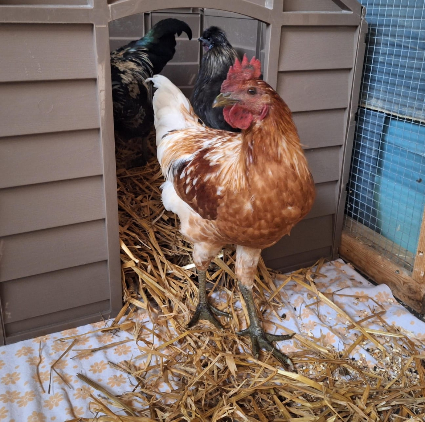Hartmut ist einer von drei Hähnen, die vermutlich zusammen ausgesetzt wurden – gemeinsam mit Fokko und Dietmar. Bei uns hat sich schnell gezeigt, dass Hartmut ein ganz besonderer Charakter ist: neugierig, mutig und aufgeschlossen gegenüber Menschen. Bei den Reinigungsarbeiten hat man ihn meist direkt an den Fersen – Hartmut möchte immer wissen, was los ist und schaut voller Interesse zu. Und wenn es Leckereien gibt, steht Hartmut mit den anderen Jungs schon erwartungsvoll an der Tür und lässt sich nicht zweimal bitten.